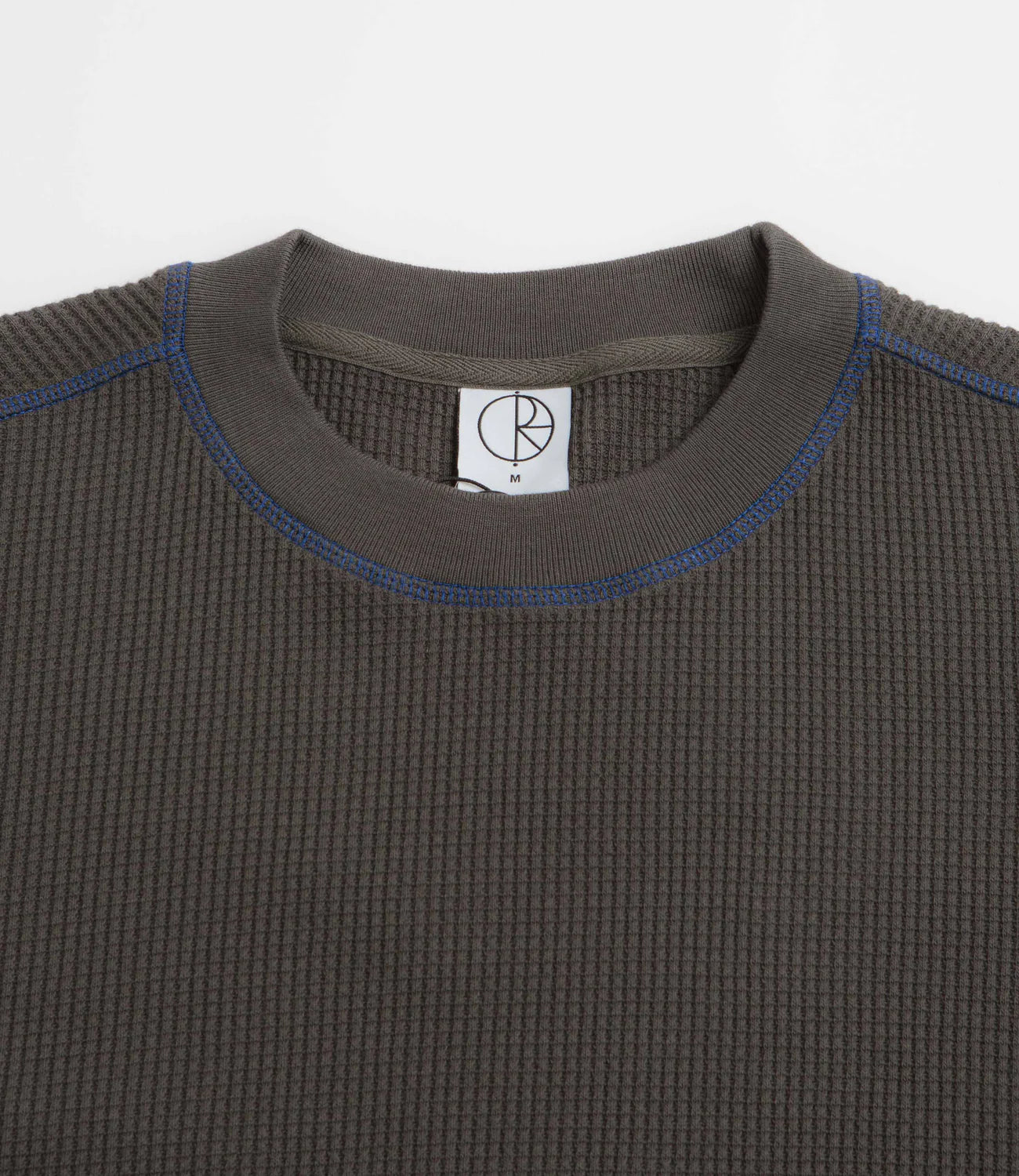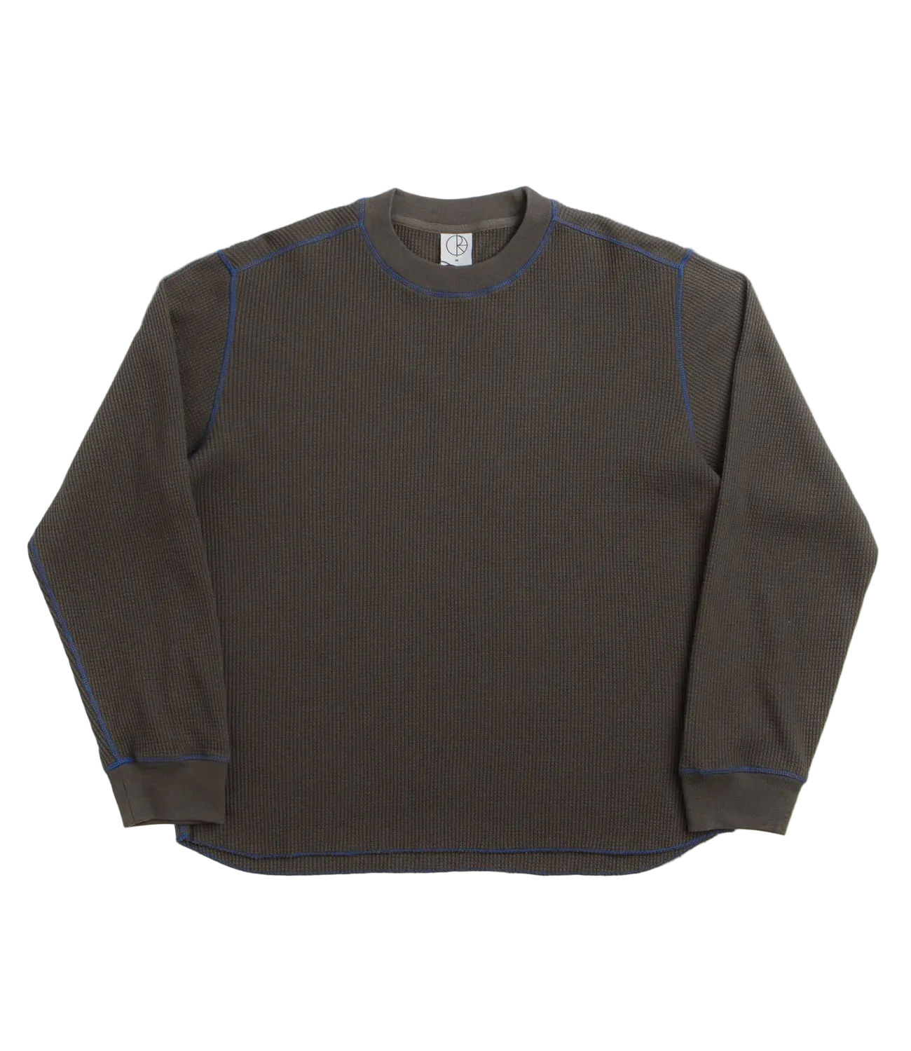 Crafted from 100% cotton waffle jersey and garment dyed for a soft, broken-in feel, this long-sleeve tee combines comfort with subtle style. Rib-knit collar and cuffs, along with contrast overlock stitching, add refined detailing, while an embroidered patch logo gives it additional character.